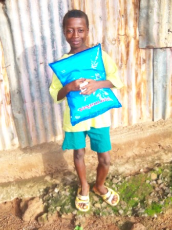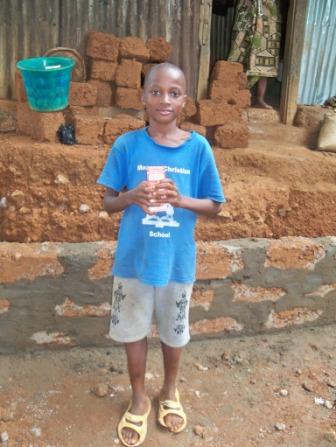 Abubakarr does light errands for people so that he can have food in his mother’s absence. Their home does not have running water or electricity. Consequently, Abubakarr has to walk some distance each day to fetch water for domestic purposes. At night, the only source of light available is a crude locally-made kerosene lamp. Thankfully, some of their neighbors have electricity and Abubakarr goes to their house to study / finish his homework at night. Abubakarr wants to become a medical doctor when he grows up.