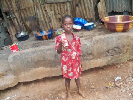 Hawanatu and her two siblings and parents live in a zinc sheet home with no running water or electricity. The single room and living room house the entire family. Hawanatu walks around bare-footed except when she goes to school or to church. Her father works as a security guard and her mother is a hairdresser. Their combined monthly income of US $100 is insufficient to cover the family needs. They have had to make adjustments to make ends meet and this has adversely affected the quality of food that they eat and the frequency of meals.