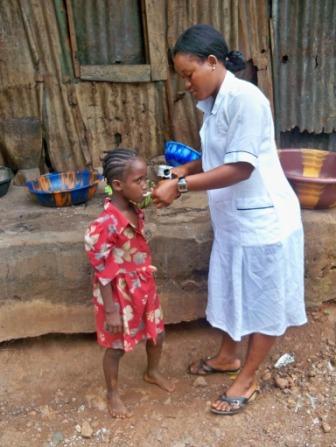 Hawanatu does light errands for people to raise money for her lunch. This helps to complement her diet. She was delighted to receive the vitamin supplements as this will improve her nutrition.